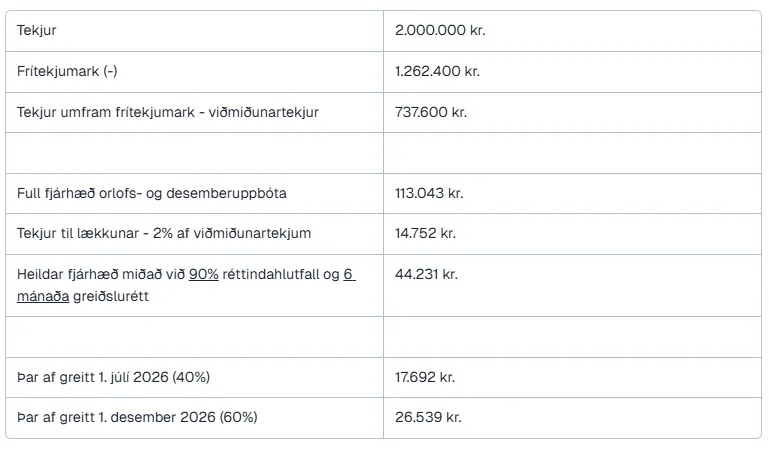 Orlofs- og desemberuppbætur árið 2026 eru að hámarki: