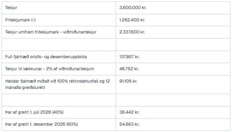 Orlofs- og desemberuppbætur árið 2026 eru að hámarki:
