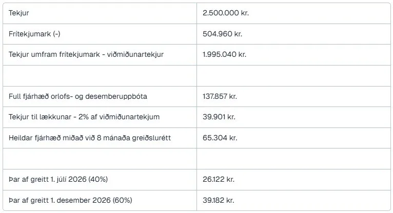 Orlofs- og desemberuppbætur árið 2026 eru að hámarki: