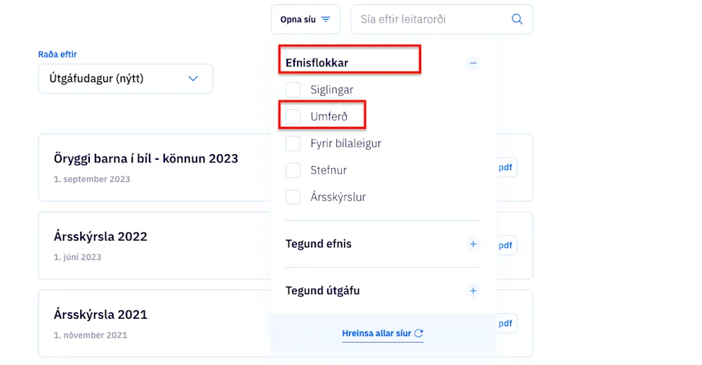 Þetta gæti t.d. verið tag á borð við „Ársskýrslur“, „Fræðsluefni“, „Úttektarskýrslur“ eða „Stefnur“.