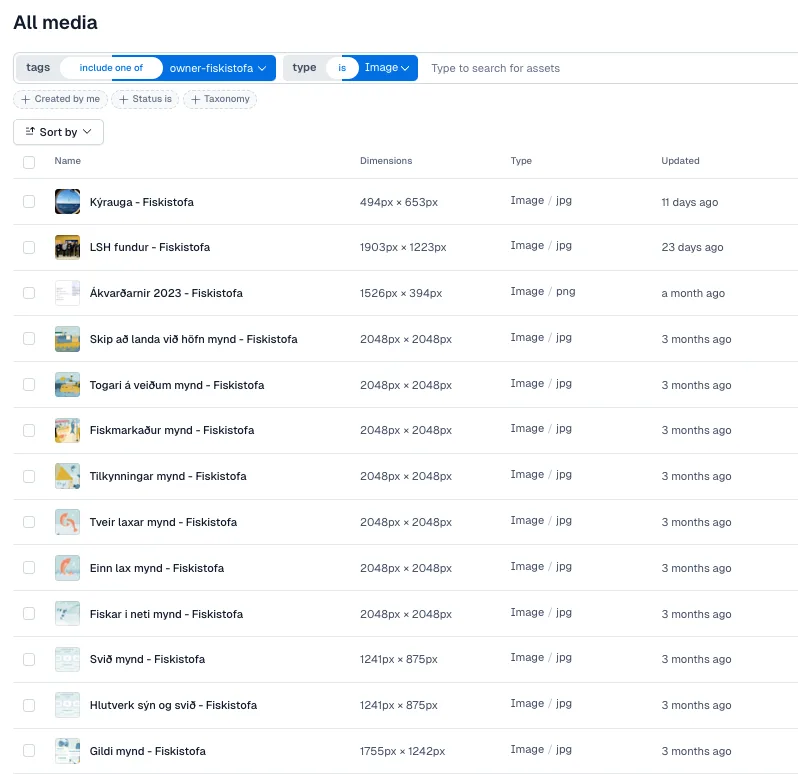 Þá birtast allar myndir stofnunarinnar í lista, eins og sést á skjáskoti hér fyrir neðan.