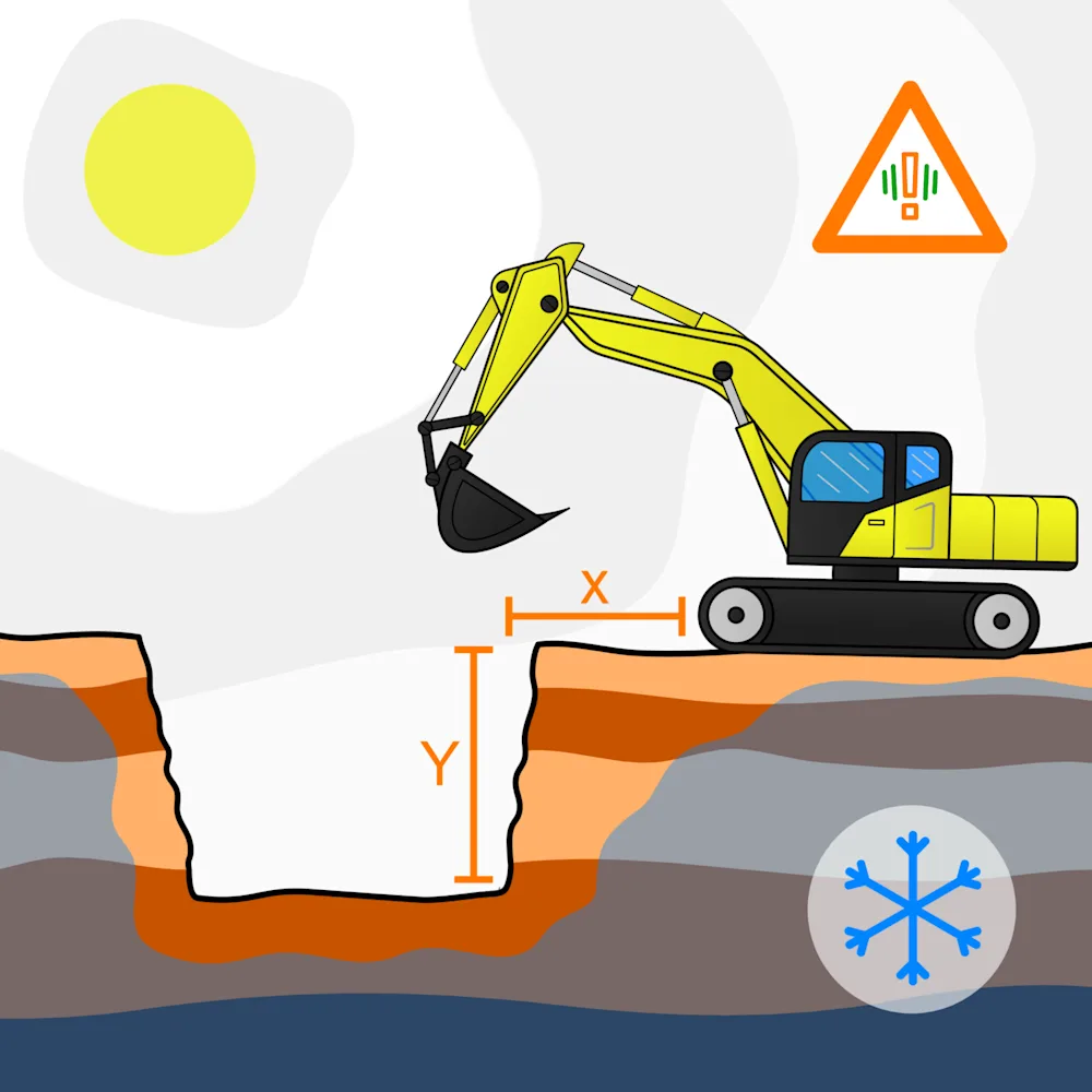 When digging trenches and foundations, it is important to keep them open for as short a time as possible. During excavation, special care must be taken not to place materials too close to the edges, as this can put too much load on the walls and increase the risk of collapse.