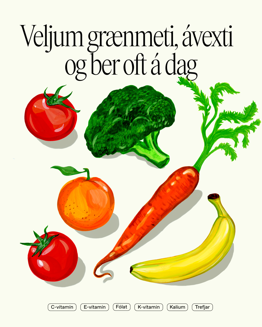 Choose vegetables, fruits and berries often a day (Icelandic)