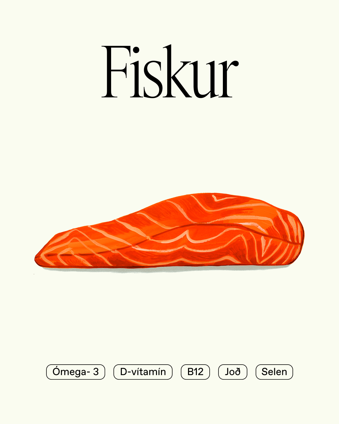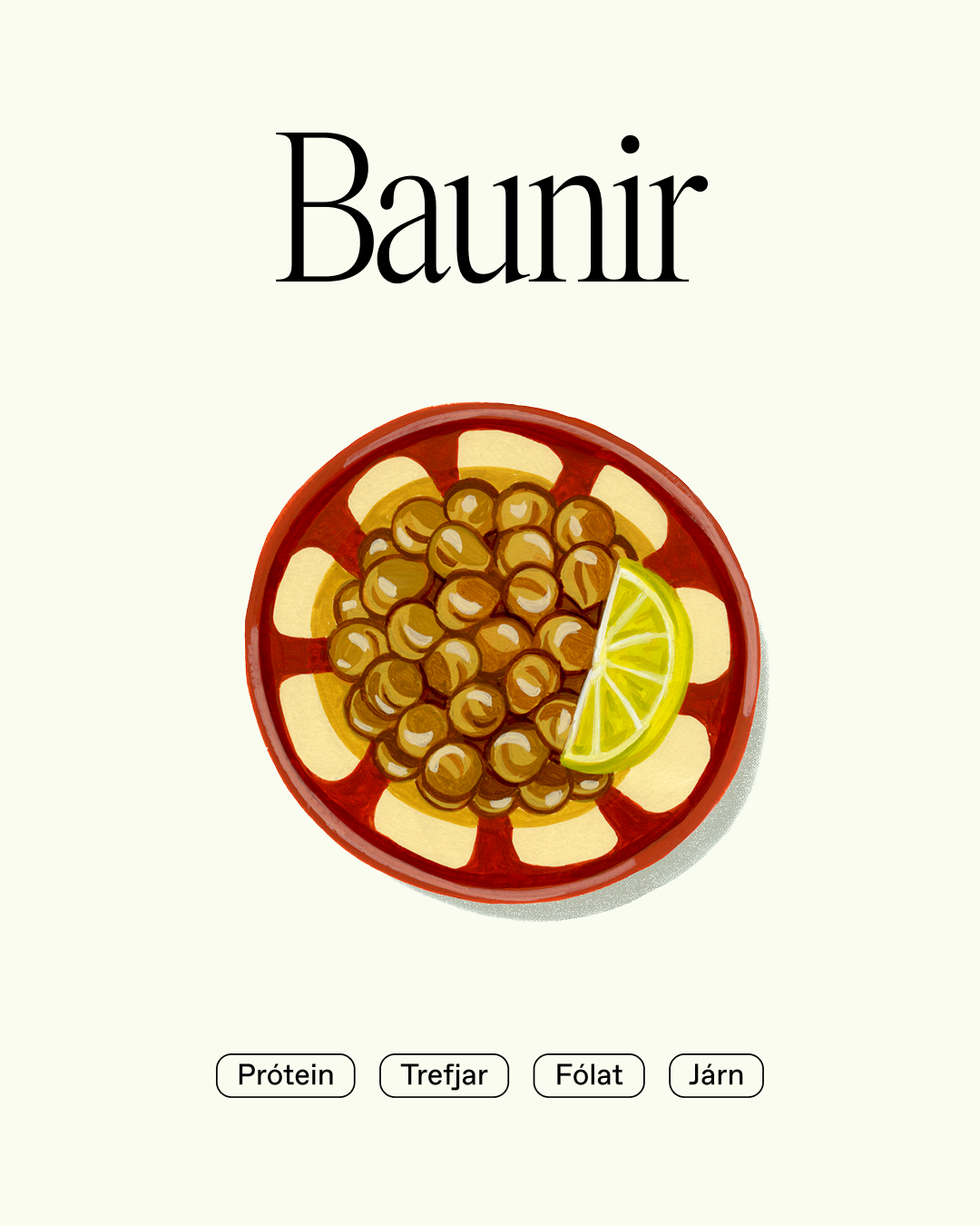 Choose fish, beans, and lentils more often than red meat - limit the consumption of processed meat (Icelandic)