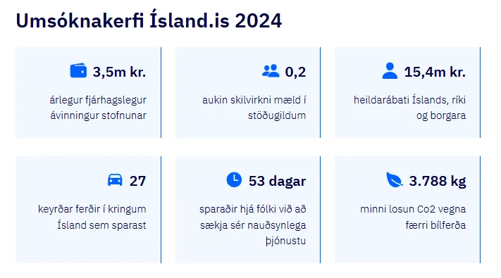 Similarly, the benefits of digital processes show that the rationalization of the application system was approximately ISK 900 million in 2024. This is based on the 300 thousand applications that passed through the system on the same premise that the processing time is 10 minutes and two visits were needed to complete each transaction.