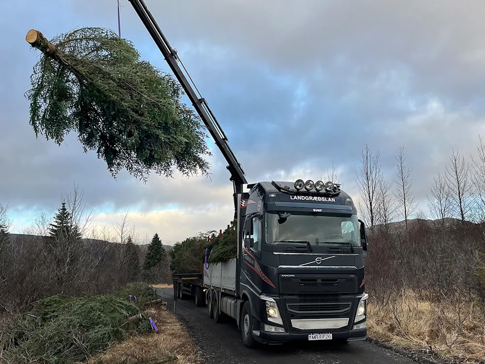 Mr. Jóhannes Sigurðsson, Assistant Forest Manager for South Iceland, reports that approximately 35 mature trees, ranging from three to twelve meters in height, have been harvested from South Iceland's national forests this year for public display. The recent merger of instituions resulting in the forming of the new Land and Forest Iceland facilitated the transport of these trees by Mr. Bjarni Arnþórsson of Gunnarsholt using a Land and Forest Iceland vehicle, eliminating the need for external contractors.