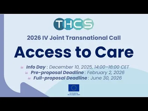 THCS launches its fourth Joint Transnational Call (JTC) for proposals aiming to fund research and innovation projects that contribute to ensuring equitable access to and utilisation of health and care services and provide policy and decision makers with the knowledge and tools needed to implement resource reallocation as the health and care system transitions to address new and ongoing challenges. 32 funding agencies participate.