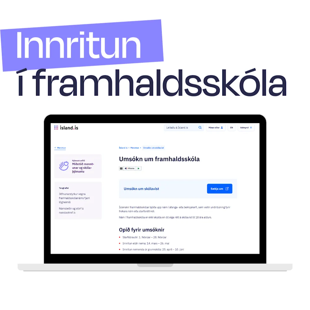 The new application portal was developed in close cooperation between The Directorate of Education and School Services and Digital Iceland. The goal is to simplify the process, improve service to applicants and ensure secure communication using electronic identification. Guðrún Helga Ástríðardóttir is an expert in secondary school services at The Directorate of Education and School Services. She is happy with this innovation: “It is very important that the application process goes smoothly, as these are truly big milestones in every individual’s life. It is therefore a joyful fact how quickly and well the development of this application solution went,” says Guðrún Helga, and the collaboration with Digital Iceland is well-documented.