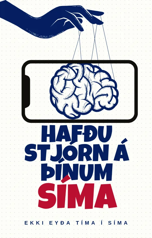 The winners in the compulsory school category are Arnar Hannesson, Alexander Valur B. Garðarsson, Andri Fannar Andrésson, and Ómar Andri Kristjánsson, Gerðaskóli, Suðurnesjabær. Their winning submission was a poster titled “Don’t Waste Time on the Phone.”