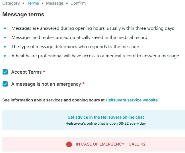 Please read the information carefully. You need to select both Accept Terms and A message is not an emergency.