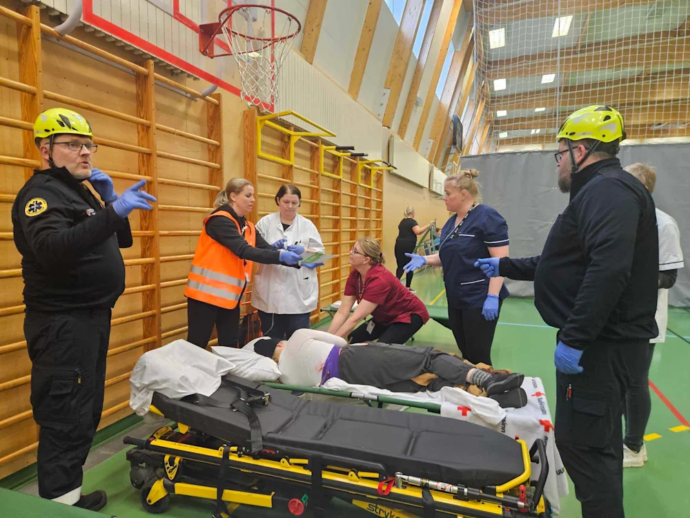 During the exercise, the response to a group accident was rehearsed and a scene was set up where a bus and three passenger cars had collided and 24 people were injured.