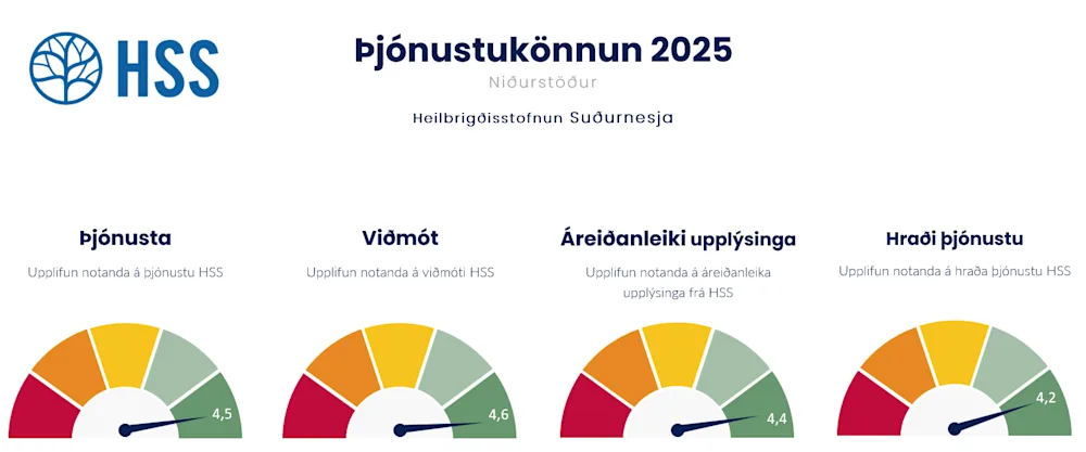 Users of Suðurnes Hospital & Health Center are now generally more satisfied with the institution’s services, according to a standardized service survey conducted by the Ministry of Finance and Economic Affairs. Overall satisfaction now measures 4.5 out of a possible 5. The highest satisfaction scores relate to staff attitude and the reliability of information provided to users.