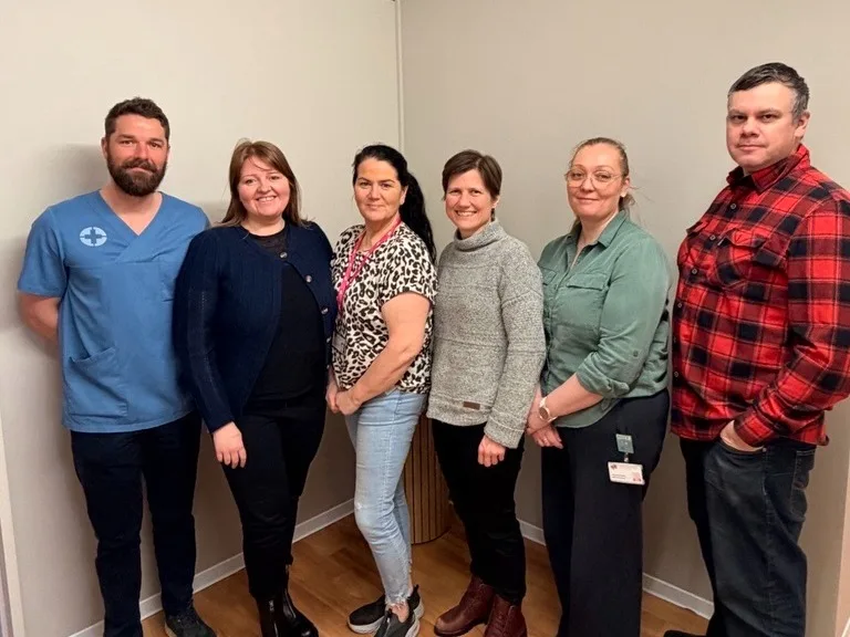 From left to right in the photo are: Björn Jakob Magnússon, General Practitioner; Þórhildur Guðbjörg Hjaltadóttir, Patient Flow Manager; Anna Margrét Magnúsdóttir, Registered Nurse; Lóa Björk Óskarsdóttir, Head of Laboratory Services; Aníta Ársælsdóttir, Registered Nurse in Vestmannaeyjar; and Sverrir Örn Jónsson, Emergency Medical Services.
