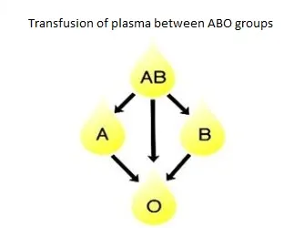 Red blood cell concentrate, plasma and platelets can be given between blood groups if certain rules are observed. Platelets can be given between ABO blood groups, thought attempting to give the patient platelets from his/her blood group if possible.