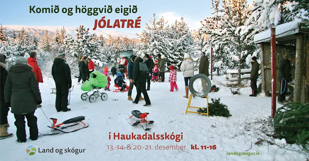 The Haukadalur National Forest will be filled with festive cheer for two weekends in the upcoming Advent season, specifically on December 13th-14th and December 20th-21st. We will be open from 11:00 AM to 4:00 PM, offering visitors the opportunity to cut their own Christmas tree in the forest or purchase a pre-cut tree, branches, and other holiday decorations.