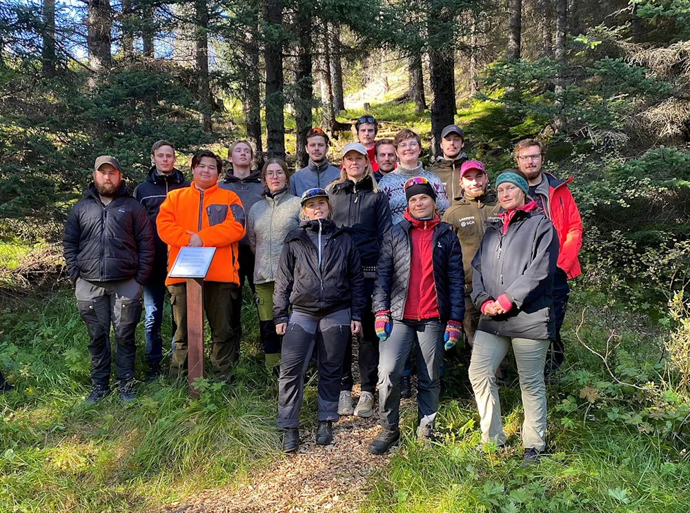 A group of forestry students from the Swedish Agricultural University of Umeå, currently in their second year of studies, have recently embarked on a visit to Iceland. Their primary objective is to gain insights into Icelandic forests and forestry practices. The curriculum of their studies encompasses a comprehensive range of forestry-related subjects, including processing and forest care. Upon successful completion of their studies, these students will be conferred with the traditional degree of Jägermästare, which is equivalent to the forester's degree in Iceland.