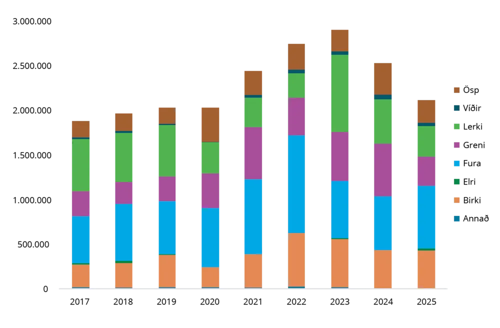 There is no single explanation for why fewer tree seedlings were planted in projects on agricultural holdings supported by Land and Forest Iceland in 2025 compared with previous years. Several factors influence these figures from year to year, and such fluctuations are to be expected.