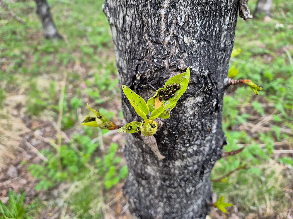 The primary insect species that infest trees have already emerged. For instance, white-spot purple larvae (Heringocrania unimaculella) have begun consuming birch leaves, and their presence will become increasingly noticeable in the upcoming weeks. Additionally, the brassy leaf beetle (Phratora vitellinae) has been observed in both black cottonwood trees and willows. Attached is a photograph captured a few days ago by Valgerður Erlingsdóttir, a forestry consultant based in South Iceland. The image depicts a flock of brassy leaf beatles in a South Iceland black cottonwood forest.