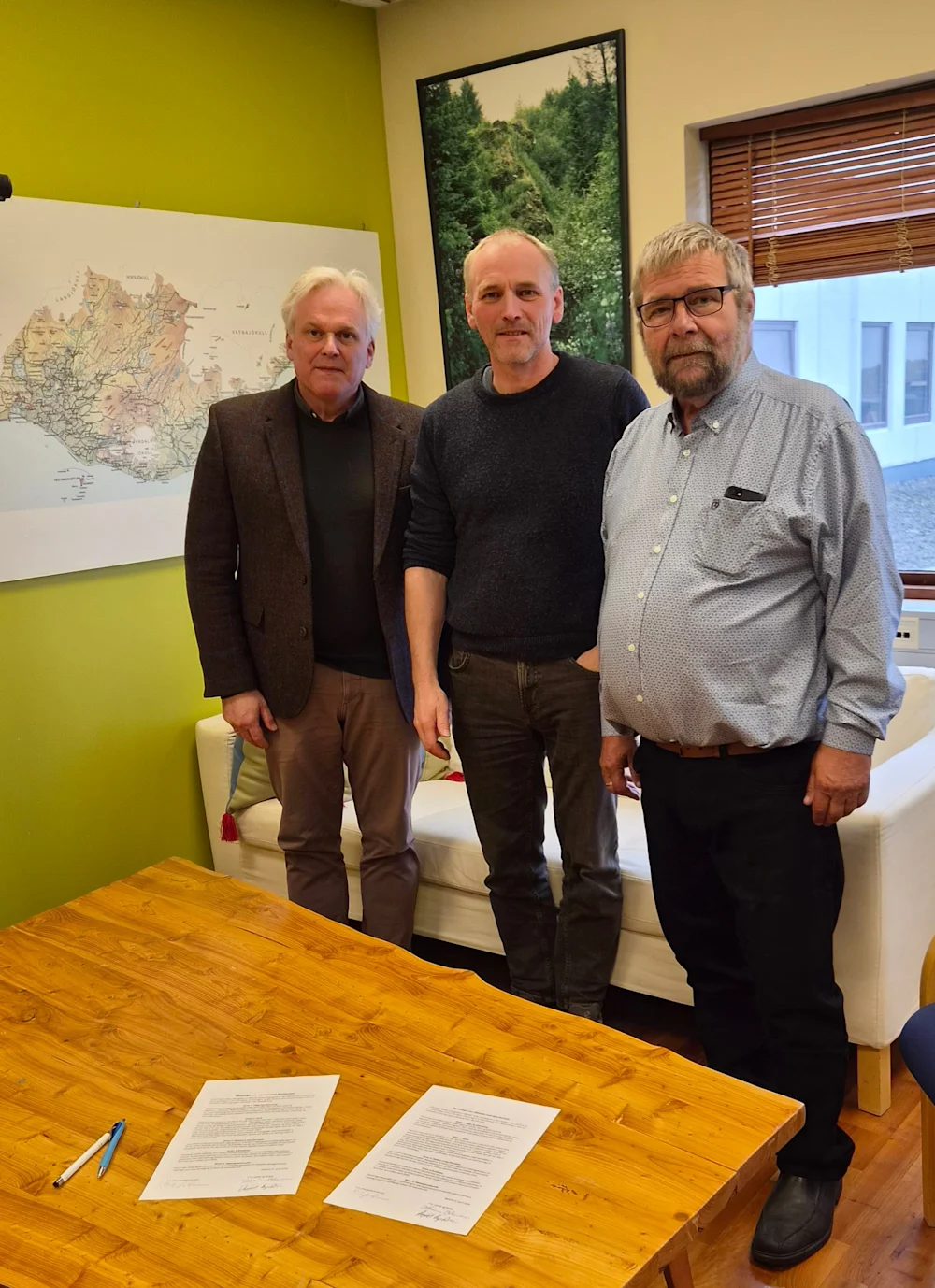 At the signing of the agreement. From left: Ágúst Sigurðsson, Director of Land and Forest Iceland; Hreinn Óskarsson, Division Manager at Land and Forest Iceland; and Ólafur Wernersson, Managing Director of Orkugerðin. Photo: Hreinn Óskarsson.