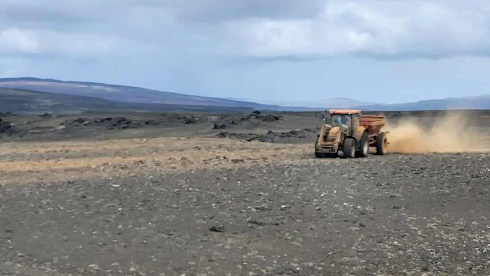 Distribution of organic fertiliser on a land reclamation site. Photo: Hreinn Óskarsson.