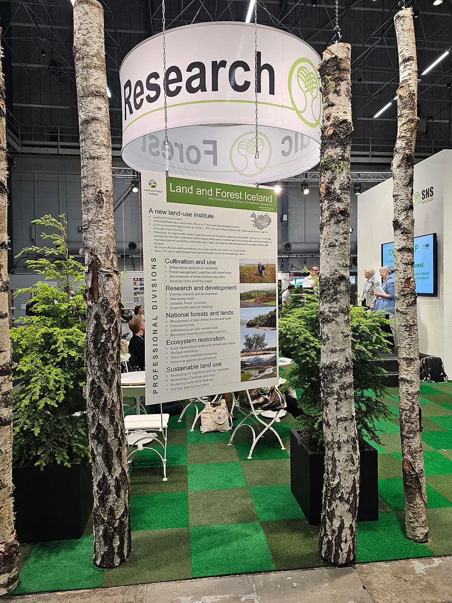 The twenty-sixth World Conference of IUFRO, the global consortium of forestry research institutions, took place in Stockholm, 23-29 June. A total of 4,271 participants from 102 countries participated. The conference provides an international platform for people from all disciplines connected to forests and forestry science to share knowledge and exchange views. The conference also provides opportunities for dialogue with young people, people from politics and administration, leaders in the forestry sector, representatives of companies and institutions, and representatives of NGOs. There were eight representatives from Iceland, five of them from Land and Forest Iceland.