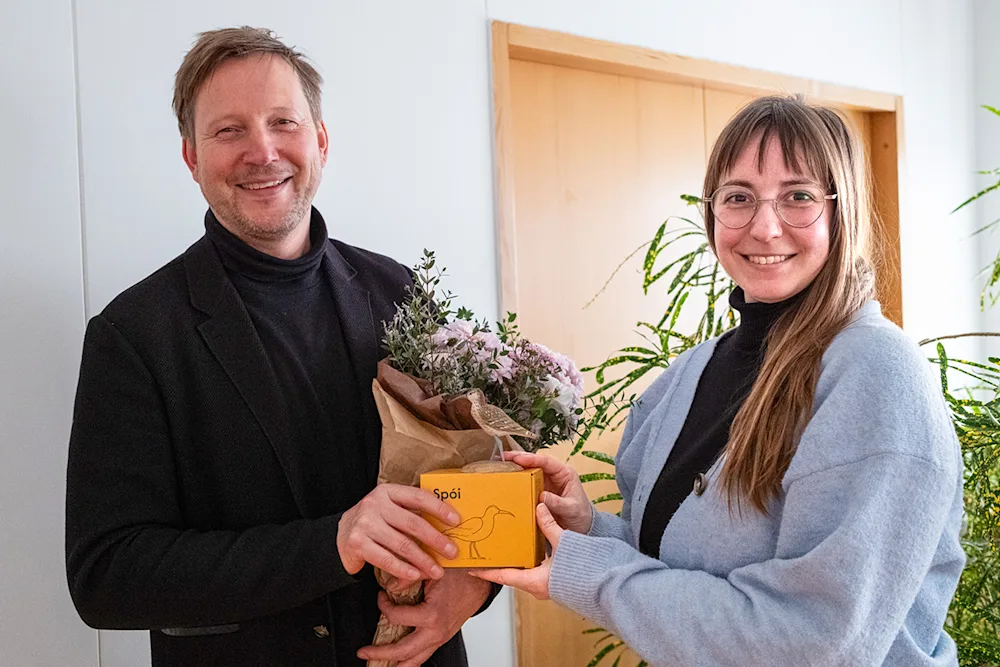 The winning contributor at left, Christian Schultze, together with the project manager of Mýralíf, Elisabeth Jeanne Marie Heloise Bernard. Photo credits: Utra Mankasingh.