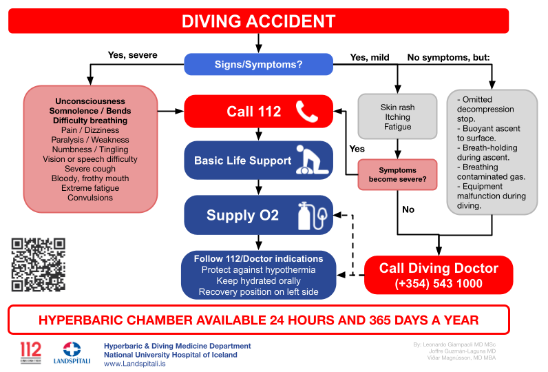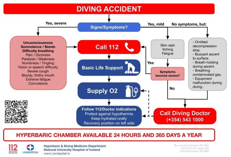 Clearly state that a diving accident has occurred or request evaluation by a diving medicine specialist +354 543 1000