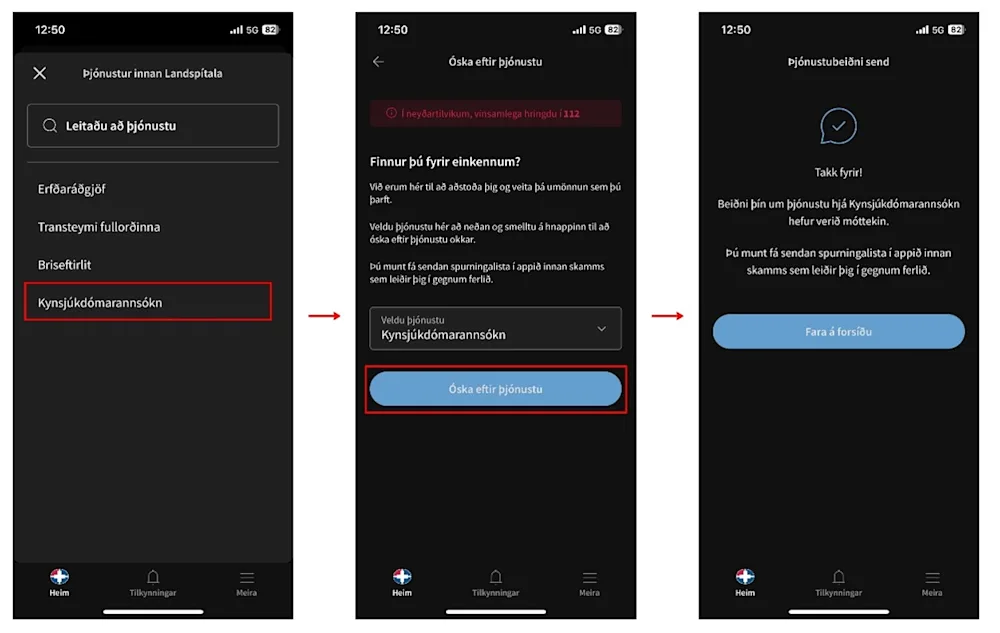 You will receive a message through Heilsuvera, and you can see the appointment booking in the Landspítali app.