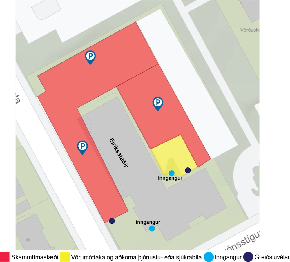 Family members and visitors can park in nearby parking areas operated by the City of Reykjavík Parking Fund.