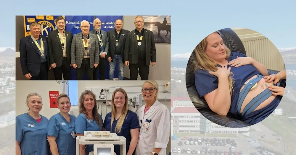 The Kiwanis clubs Herðubreið in Mývatnssveit, Kaldbakur in Akureyri, Skjöldur in Siglufjörður, Drangey in Sauðárkrókur, Askja in Vopnafjörður, Skjálfandi in Húsavík, and Grímur in Grímsey joined forces to donate a wireless fetal heart rate monitor to the maternity ward at Akureyri Hospital.