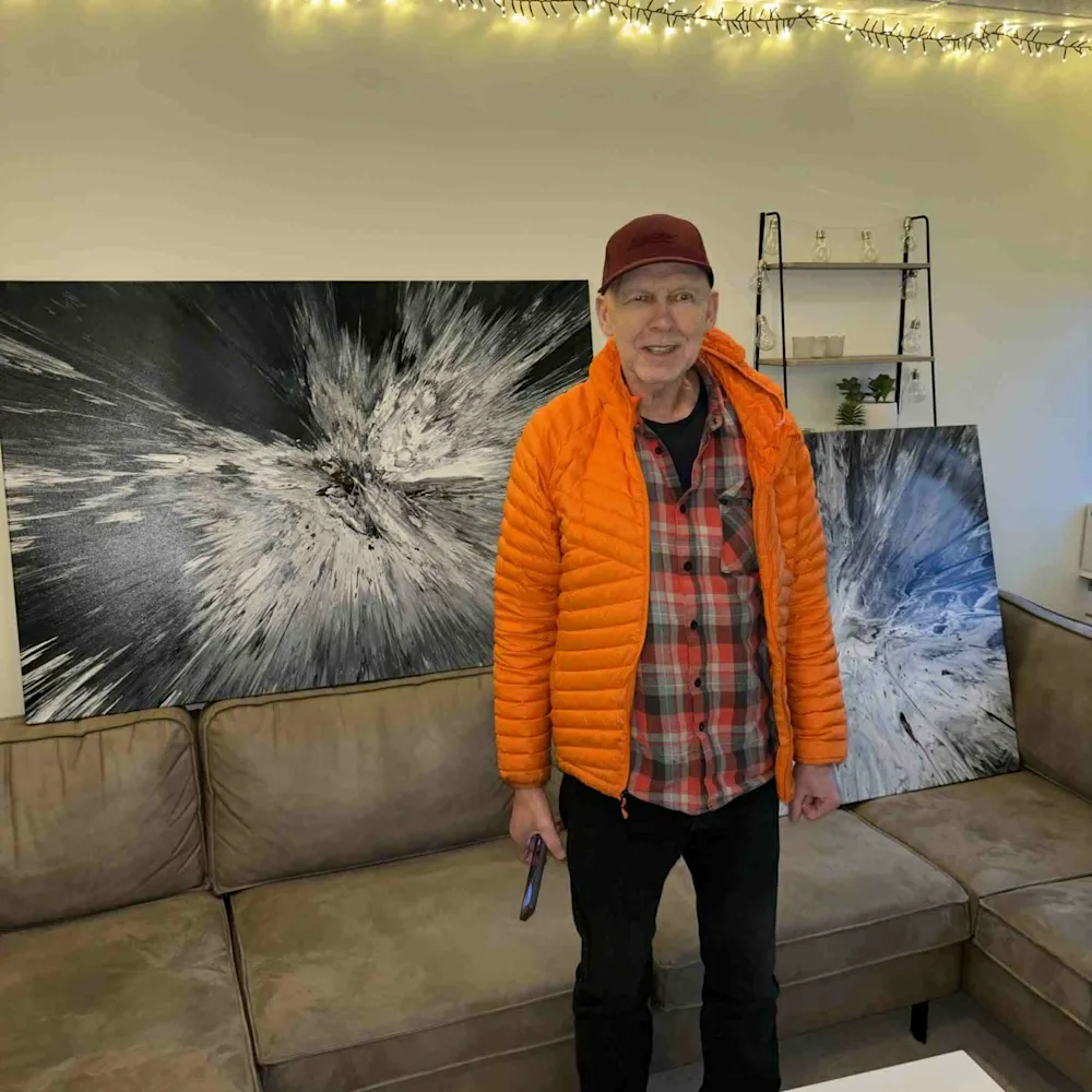 Stefán Þengilsson with the artworks