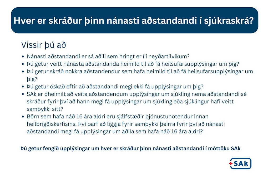 In April, an awareness campaign will be launched regarding the registration of next of kin in patients’ medical records. The aim of the initiative is to raise patients’ awareness of next-of-kin registration and encourage them to update the information as needed.