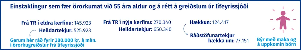 About 95% of those who have been receiving a disability pension will receive a higher allowance in the new system. People whose allowance is reduced have high monthly pension fund incomes, and those who will receive the same allowance are those with limited rights in the social insurance system. Due to the changes, the Social Insurance Administration today paid out 1,200 million ISK more to disability and rehabilitation pension recipients than at the end of last month.