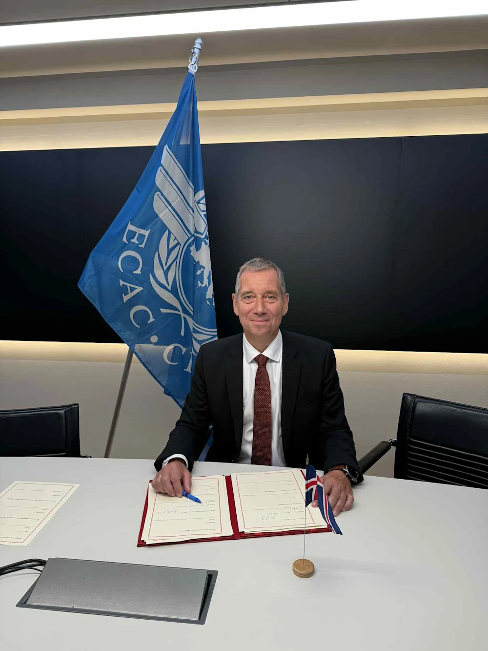 Jón Gunnar Jónsson, Director General of the Icelandic Transport Authority, signed yesterday, on behalf of the Icelandic government and the aviation authorities, an updated convention on the Bureau of the European Civil Aviation Conference.