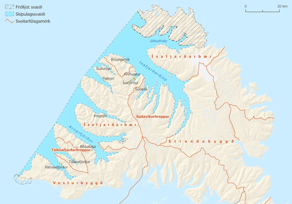 The planning area is connected to the municipalities of Vesturbyggð, Ísafjarðarbær, Bolungarvíkurkaupstaður, Súðavíkurhreppur and Strandabyggð.