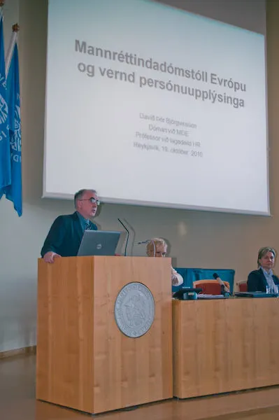 Davíð Þór Björgvinsson, dómari við Mannréttindadómstól Evrópu, fjallaði um þá dóma sem fallið hjá Mannréttindadómstólnum í tengslum við persónuvernd. Fjallaði hann einkum um 8. gr. Mannréttindasáttmálans og hvernig dómstóllinn hefði túlkað ákvæðið, m.a. út frá neikvæðum og jákvæðum skyldum ríkis, söfnun upplýsinga og notkun þeirra hjá hinu opinbera, hvenær skerðing á réttinum sé réttlætanleg o.fl.