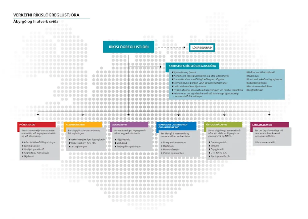 Nýtt skipurit hefur tekið gildi fyrir embætti ríkislögreglustjóra. Nýtt skipurit er einfaldara og gerir ráð fyrir meira sjálfstæði einstakra sviða. Skipuritið verður innleitt í nokkrum skrefum og í dag birtist auglýsing eftir fjórum sviðsstjórum. Það er fyrir almannavarnir, landamærasvið, alþjóðasvið og þjónustusvið. Gert er ráð fyrir að ráðið verði í stöðurnar 1. nóvember n.k.