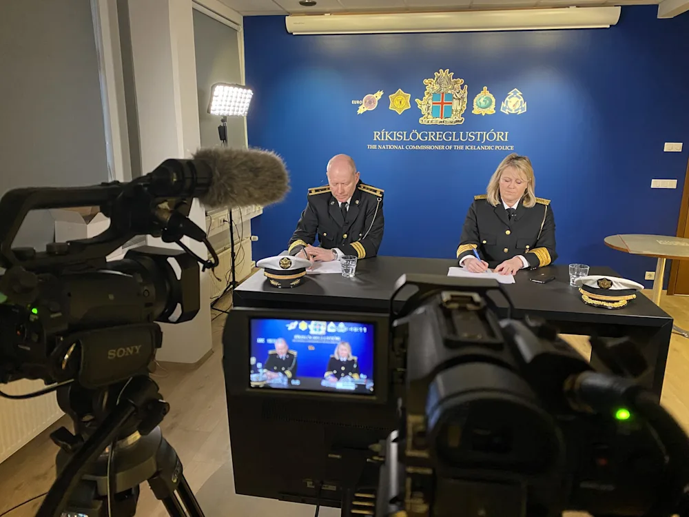 Sigríður Björk Guðjónsdóttir, ríkislögreglustjóri og Karl Steinar Valsson, yfirlögregluþjónn og sviðsstjóri alþjóðasviðs embættisins sátu blaðamannafundinn.