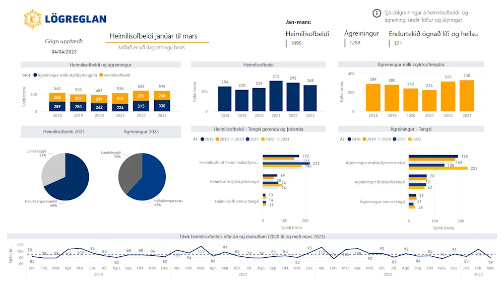 Ný skýrsla ríkislögreglustjóra um tilkynningar til lögreglu um heimilisofbeldi og ágreining milli skyldra/tengdra aðila fyrir fyrstu 3 mánuði ársins 2023 hefur verið birt á vefsvæði lögreglunnar.