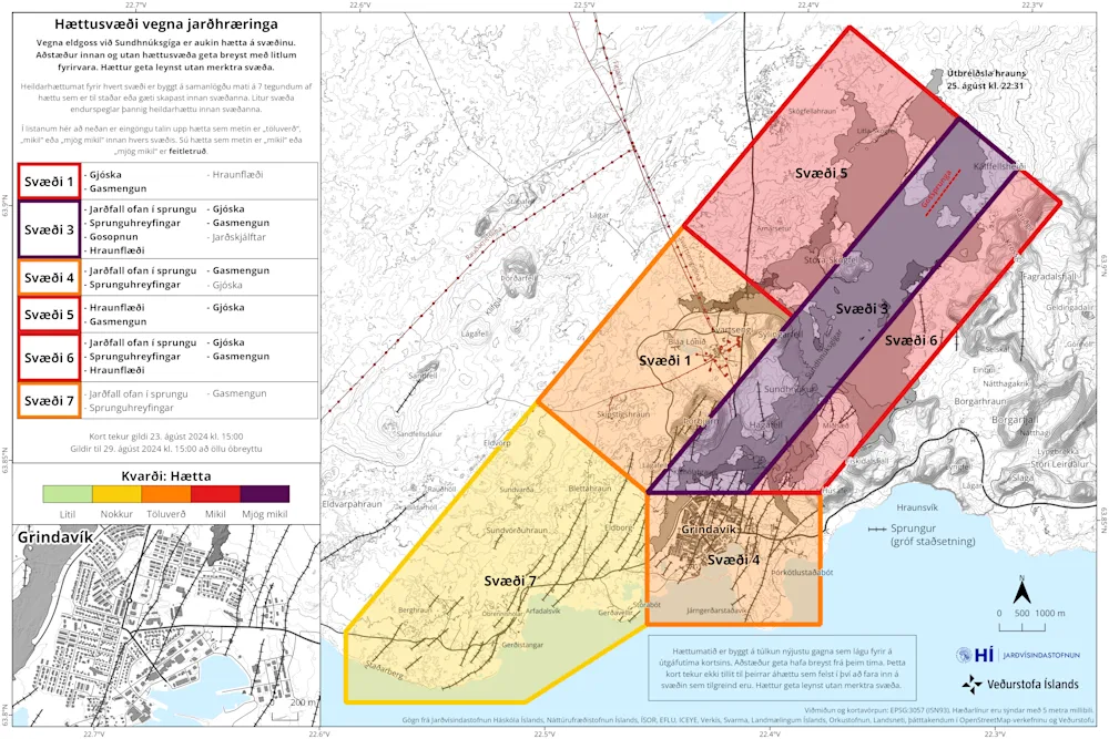 Hættumat uppfært, sjá hættumatskort í viðhengi sem gildir til 29. ágúst 2024, kl. 15:00 að öllu óbreyttu.