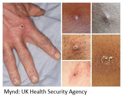 Í þessu faraldri hafa flest – en ekki öll – tilfelli hingað til greinst hjá hommum, tvíkynhneigðum og öðrum körlum sem stunda kynlíf með körlum, þar sem sár og útbrot koma fram í kringum kynfæri eða í kringum endaþarmsop eða í munni.