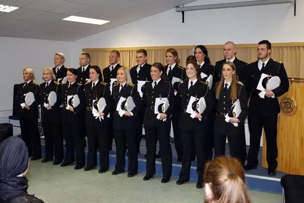 Föstudaginn 12. desember 2014 fór brautskráning nemenda Lögregluskóla ríkisins fram við hátíðlega athöfn í húsnæði skólans að Krókhálsi 5b. Brautskráðir voru 16 nemendur sem hófu grunnnám við skólann þann 14. janúar 2014.Í fyrsta sinn í sögu lögreglunáms á Íslandi voru konur í meirihluta brautskráðra en í hópnum voru 5 karlar og 11 konur, eða 68,75% brautskráðra nemenda.Við athöfnina fluttu ávörp Karl Gauti Hjaltason, skólastjóri Lögregluskóla ríkisins, Ólöf Nordal, innanríkisráðherra og Páley Borgþórsdóttir, sem tekur við starfi lögreglustjóra í Vestmannaeyjum um næstu áramót. Rut Herner Konráðsdóttir og Páll Fannar Helgason fluttu, fyrir hönd nemenda, annál ársins og hljómsveit, skipuð núverandi og fyrrverandi lögreglumönnum, flutti tvö lög við athöfnina.Hæstu meðaleinkunn á lokaprófum náði Erna Dís Gunnarsdóttir, 9,10 og með aðra hæstu einkunn voru Björk Jónsdóttir og Rósa Árnadóttir, 8,90. Þessir nemendur fengu viðurkenningu frá skólanum fyrir góðan námsárangur. Meðaleinkunn allra útskriftarnemendanna var 8,27, sem er frábær árangur.Lögreglufulltrúarnir sem starfa við Lögregluskóla ríkisins völdu úr hópi nemenda „Lögreglumann skólans“ og varð Rósa Árnadóttir fyrir valinu.Í ávarpi sínu nefndi Karl Gauti Hjaltason m.a. að lögreglunámið hefði breyst mikið gegnum árin og verið lagað að kröfum tímans. Það hafi lengi verið framtíðarsýn skólans að lengja lögreglunámið en fyrir margra hluta sakir hafi ekki tekist að koma náminu í það horf sem menn hafi talið skynsamlegast.Karl Gauti sagði breytingar á náminu í farvatninu, í kjölfar vinnu starfshóps sem falið var það verkefni að endurskoða skipulag og starfsemi Lögregluskóla ríkisins og gera tillögu til ráðherra að framtíðarskipan lögreglumenntunar. Í þessu sambandi sagði Karl Gauti afar brýnt að gæta þess að námið verði áfram tengt lögreglustarfinu og að skólinn verði sú tenging við lögregluna sem nauðsynleg er talin. Þá sagði hann mikilvægt að lögreglan í landinu láti það ekki gerast að fjármunir verði sparaðir til menntunar lögreglu á sama tíma og kröfur séu gerðar um lengingu grunnnámsins og færslu þess upp á háskólastig.Karl Gauti sagði eitt það mikilvægasta sem lögreglan í landinu ætti væri traust fólksins og að ítrekað hafi lögreglan mælst með eitt mesta traust allra stofnana landsins. Það fjöregg þyrfti að varðveita, það gerði lögreglan best með því að vanda öll vinnubrögð, nálgast verkefni sín af ákveðni og síðast en ekki síst að koma fram við borgarana af virðingu.Ólöf Nordal sagði m.a., í ávarpi sínu, það ánægjulegt hversu margar konur væru í útskriftarhópnum. Sagði hún hópinn eiga í vændum vandasamt og mikilvægt starf sem væri líka þakklátt. Ólöf minntist á tillögur starfshóps um breytingu á grunnnámi lögreglumanna þar sem gert væri ráð fyrir að námið yrði þriggja ára nám á háskólastigi. Sagði hún það grundvallarbreytingu á menntun lögreglumanna, enda væri það stefna stjórnvalda að efla löggæsluna og að lögreglan væri ávallt sem hæfust til að takast á við fjölbreytt verkefni. Fram kom í máli Ólafar að hún myndi meta tillögur starfshópsins á næstunni.,,Við þurfum ávallt að eiga lögreglulið sem getur mætt nýjum verkefnum, lögreglulið sem er tilbúið að setja sig inn í nýjar aðstæður og lögreglulið á sterkum grunni sem getur lagt á sig stöðugt nýjar áskoranir. Liður í því er í fyrsta lagi grunnmenntunin, í öðru lagi reynslan og hæfnin og í þriðja lagi símenntun sem viðheldur þessum grunni,“ sagði Ólöf meðal annars.Að ávarpi sínu loknu afhenti Ólöf Nordal þeim Rósu Árnadóttur og Sunnefu Burgess sérstaka viðurkenningu fyrir að ná glæstum árangri í íslensku en þær fengu báðar lokeinkunnina 9,5 í námsgreininni. Viðurkenningin er annars vegar farandbikar, sem gefinn var af dómsmálaráðherra á sínum tíma, og hins vegar bókarverðlaun sem gefin eru af Landssambandi lögreglumanna.Í annál nemenda röktu Páll Fannar Helgason og Rut Herner Konráðsdóttir, á gamansaman hátt, það minnisstæðasta úr náminu á árinu, sem þeim þótti í heild sinni hafa verið stórskemmtilegt og fjölbreytt. Meðal þess sem þau nefndu var næturæfing, þjálfun í valdbeitingu og notkun táragass, notkun talstöðva, akstursþjálfun og þjálfun með Landhelgisgæslunni.Páll Fannar og Rut sögðu að nemendur myndu hugsa til tímans í Lögregluskóla ríkisins með söknuði og að þeir hafi fengið góðan undirbúning fyrir lögreglustarfið í skólanum á þessu ári. Þau hrósuðu sérstaklega starfsfólki skólans, og öllum þeim sem nemendur kynntumst í náminu, fyrir fagmennsku. Að lokum sögðu Páll Fannar og Rut að nemendur mættu vera stoltir af því að hafa lokið námi við Lögregluskóla ríkisins og sögðust þess fullviss að þeir myndu allir vinna gott lögreglustarf í framtíðinni.Páley Borgþórsdóttir beindi orðum sínum til nemenda og sagði m.a. að nú væri stór dagur í lífi þeirra, dagur sem markaði upphaf, upphaf að nýju starfi, nýjum áskorunum og nýjum tækifærum. Þeir ættu eflaust langan starfsferil fyrir höndum en meðalstarfsævi væri talin vera um 35 ár. Páley óskaði nemendum innilega til hamingju með að vera að hefja starfsævi sína, hún yrði viðburðarík og áhugaverð, ef þeir leyfðu það.Páley sagðist vilja deila uppáhalds spakmæli sínu með nemendum og bjóða þeim að gera það að sínu eigin. Spakmælið er komið frá Dalai Lama, sem útskýrði mannlega hamingju með þeim orðum að hún sé ekki fólgin í því að gera það sem hver og einn hefur ánægju af, heldur að hafa ánægju af því sem hann gerir. Páley sagði þe