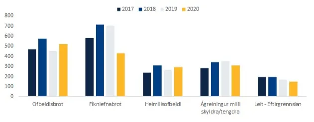 Tekin hefur verið saman þróun brota í völdum brotaflokkum fyrstu mánuði ársins og borin saman við sama tímabil síðust ára.