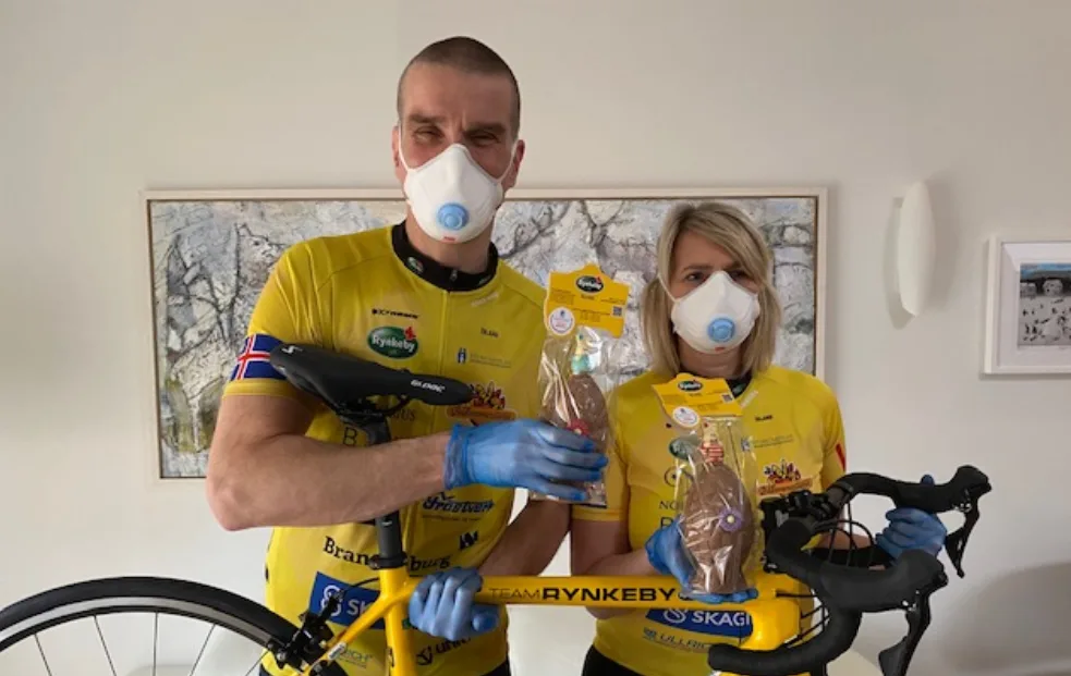 Eitt það mikilvægasta sem við þurfum að muna fyrir páskana er auðvitað að kaupa páskaeggin til að gæða okkur á. Við hjá Lögreglunni á höfuðborgarsvæðinu eru búin að því og ættu eggin að vera komin til flestra starfsmanna okkar þegar þetta er ritað. Þeir eiga það svo sannarlega skilið, rétt eins og allir hinir sem standa í ströngu í framlínunni þessar vikurnar. Við keyptum Nóa Síríus páskaeggin þetta árið hjá félögum okkar, hjónunum Þóru Jónasdóttur og Guðmundi Ásgeirssyni, en þau hafa bæði starfað í lögreglunni um árabil. Þóra og Guðmundur eru hluti af hópi sem kallast Team Rynkeby, en það er samnorrænt góðgerðarstarf. Þátttakendur þess hjóla á hverju ári til Parísar til styrktar krabbameinssjúkum börnum og fjölskyldum þeirra. Allur ágóði af sölu páskaeggja Team Rynkeby á Íslandi rennur til Styrktarfélags krabbameinssjúkra barna á Íslandi (SKB). Við vitum að vinir okkar hjá embætti ríkislögreglustjóra hafa líka keypt páskaeggin hjá þeim Þóru og Guðmundi þetta árið og er það vel. Meðfylgjandi mynd var smellt af þeim hjónum þegar páskaeggin voru færð embættinu og að sjálfsögðu var fylgt leiðbeiningum sóttvarnalæknis við afhendinguna.