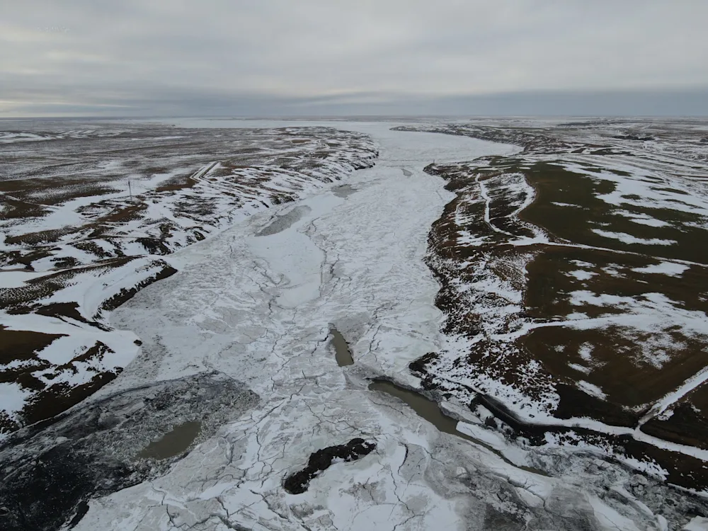 Þjórsá til suðurs 21.01.23, Urriðafoss fremst á mynd