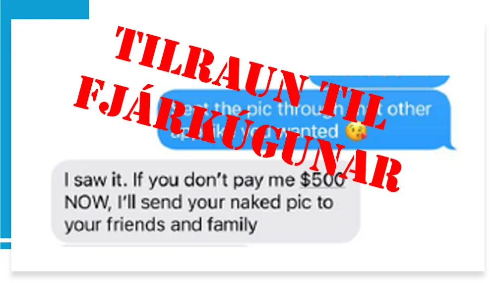 Þegar óprúttnir aðilar eru komnir með slíkar myndir þá breytist allt og hótanir um myndbirtingu byrja að berast með tímapressu. „Þú verður að borga 500 dollara með rafmynt á veski innan 12 klukkustunda eða við sendum þetta á vinalistann þinn og birtum á netinu.“ Tilgangurinn getur líka verið að sækjast eftir meira myndefni en oftast eru það peningar.