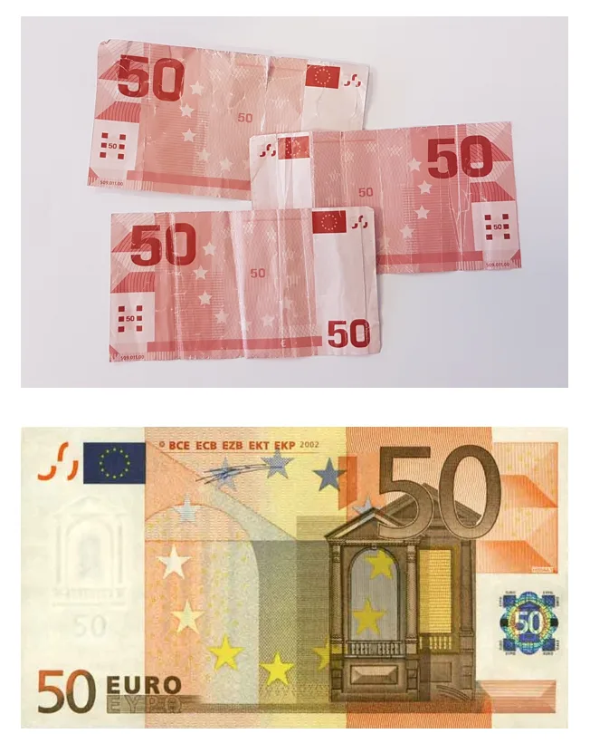 Lögreglan á höfuðborgarsvæðinu minnir afgreiðslufólk á að vera sífellt á varðbergi þegar peningaseðlar eru annars vegar, en þetta er rifjað upp hér vegna nokkurra fjársvikamála sem eru nú til rannsóknar hjá embættinu. Um er að ræða tilvik þar sem greitt var fyrir vörur með 50 evrum, en ekki var um raunverulega seðla að ræða og allt eins líklegt að þeir séu úr borðspili eða viðlíka. Á meðfylgjandi mynd má sjá þrjá seðla úr fjársvikamálunum og einn fullgildan 50 evruseðil, en munurinn á þeim er mjög greinilegur. Í amstri dagsins gerast hins vegar mistök og því er afgreiðslufólk aftur minnt á að sýna aðgæslu í störfum sínum.
