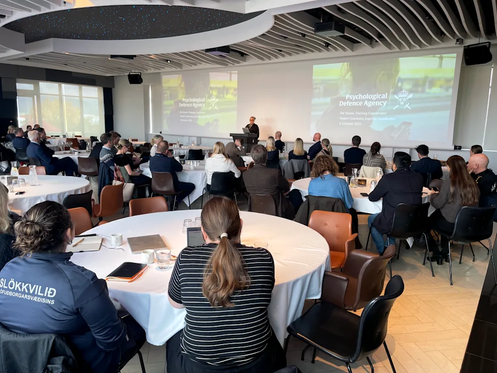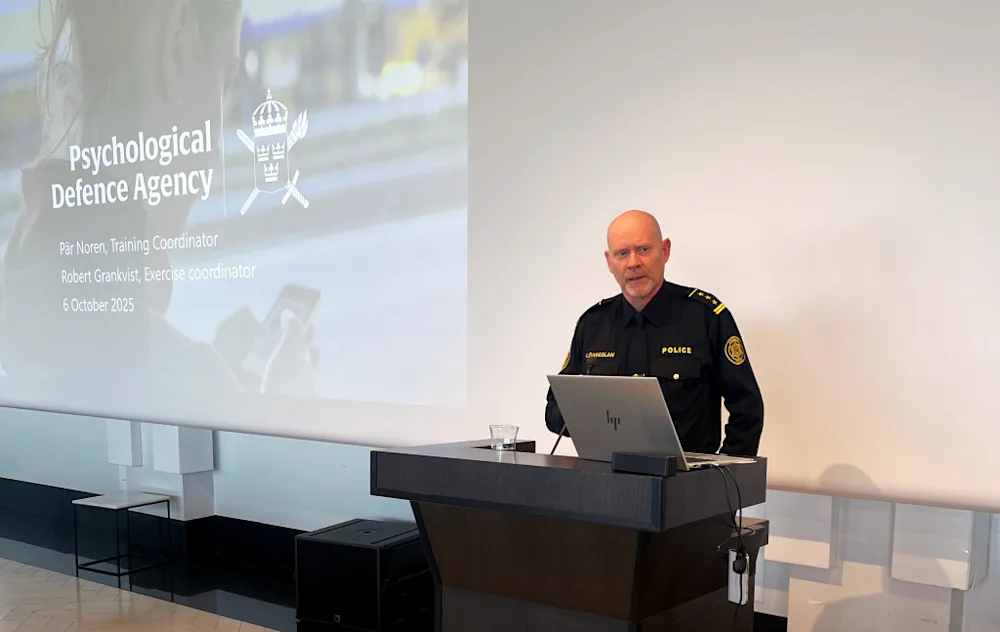 Myndigheten för psykologiskt försvar heyrir undir varnarmálaráðuneyti Svíþjóðar og hefur það hlutverk að styrkja áfallaþol sænsku þjóðarinnar í tengslum við undirróðursherferðir erlendra ríkja. Á fundinum var fjallað um það hvernig unnið er gegn undirróðursherferðum frá erlendum ríkjum í Svíþjóð en slíkum herferðum er oftast ætlað að skaða innlenda hagsmuni.