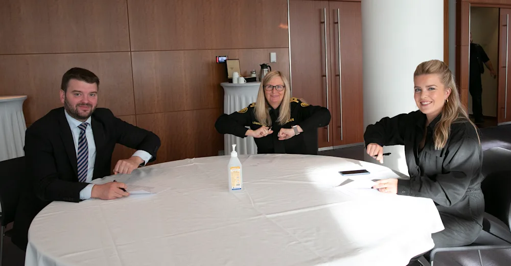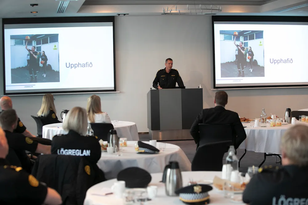Fulltrúar lögreglunnar og ráðuneytanna komu saman í gær þar sem farið var yfir stöðuna og gerð grein fyrir þeirri vinnu sem hefur staðið yfir undanfarna mánuði í tengslum við verkefnið. Þar skrifuðu jafnframt Halla Bergþóra Björnsdóttir lögreglustjóri og ráðherrarnir Ásmundur Einar Daðason og Áslaug Arna Sigurbjörnsdóttir undir samkomulag um styrk vegna þessa. Á hinni myndinni má sjá Unnar Þór Bjarnason varðstjóra, en hann sagði fundargestum frá áhugaverðu verkefni sem lögreglumenn í Kópavogi og Breiðholti hafa staðið fyrir frá því á síðasta ári og snýr að þvi að efla tengslin við unga fólkið.