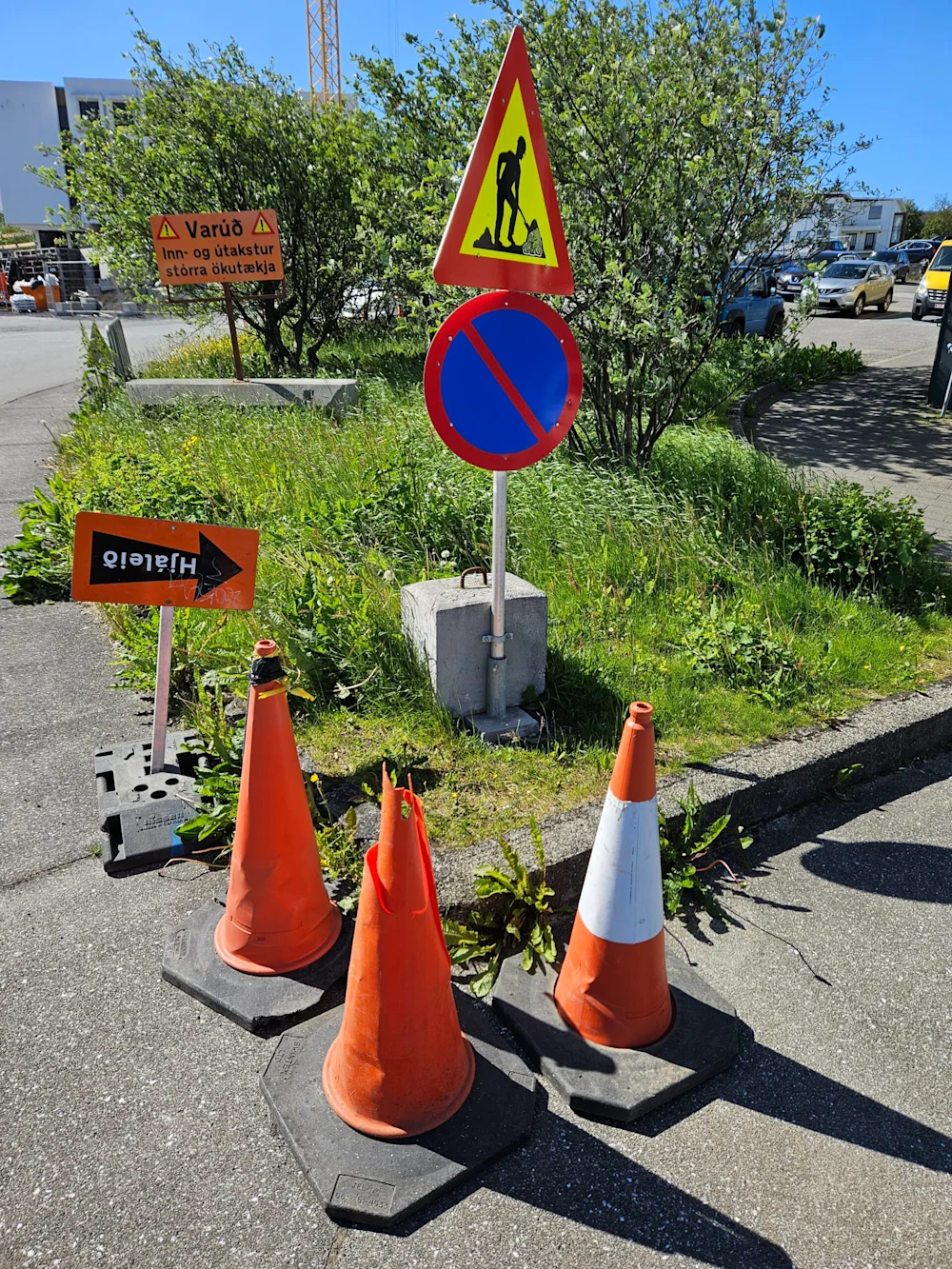 Vegfarendur eru beðnir um að virða merkingar og hraðatakmarkanir og sýna aðgát við vinnusvæðin, sem eru þröng og menn og tæki eru við vinnu mjög nálægt akstursbrautum.